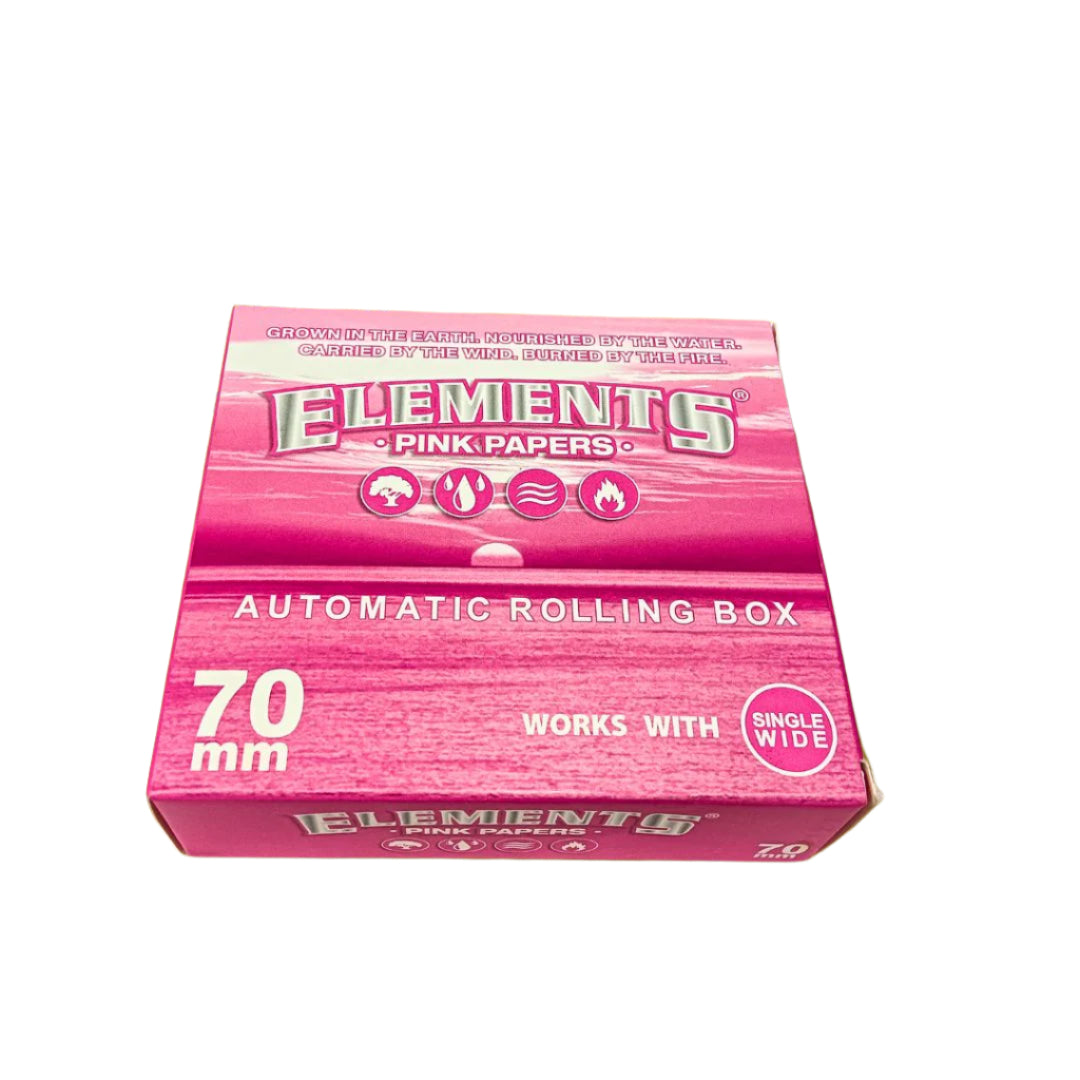Introducing the Elements Pink Metal Automatic Rolling Box, the ultimate rolling companion that combines precision and style. This compact and durable 70mm rolling box is perfect for beginners and experienced users alike, making the rolling process effortless and smooth. With its vibrant pink finish, it's more than just a tool, it's an accessory that adds personality to your experience.