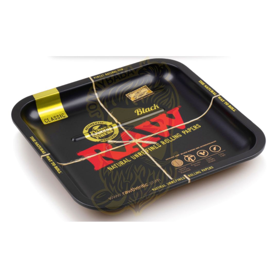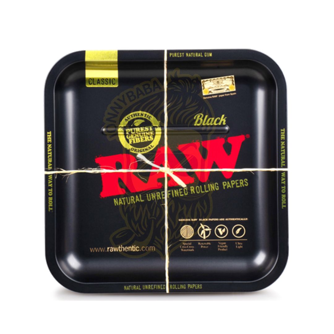 The RAW Black Square Rolling Tray - Small is the ultimate rolling accessory. Featuring a durable metal construction and a non-stick coating, this tray is conveniently small for personal use and travel. Enjoy hassle-free rolling with an elegant and stylish design. Perfect for those who value convenience.