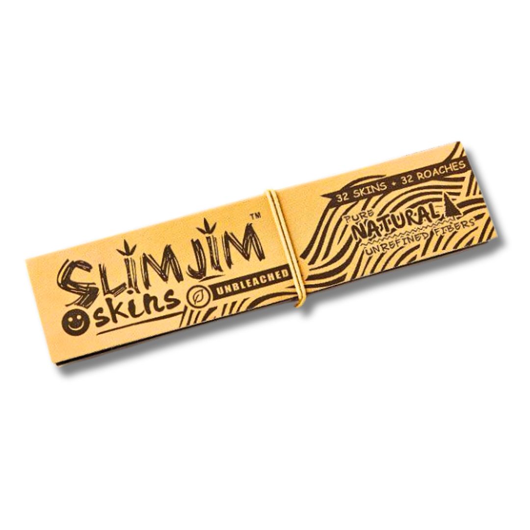 Slimjim Organic Hemp Brown Skins + Tips offer a premium smoking experience with their unbleached rice paper and hemp gum material. With 32 slim papers and 32 tips, you have convenience and customization at your fingertips. The ultra-thin design provides a slow, even burn for maximum enjoyment. Crafted for sustainability and style, these skins are perfect for hand-rolling or use with machines.