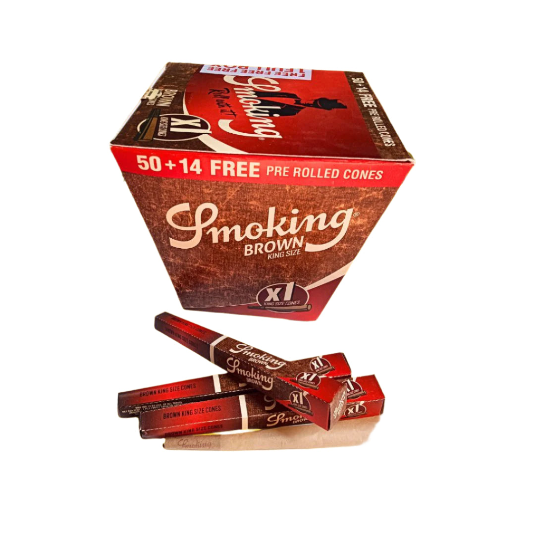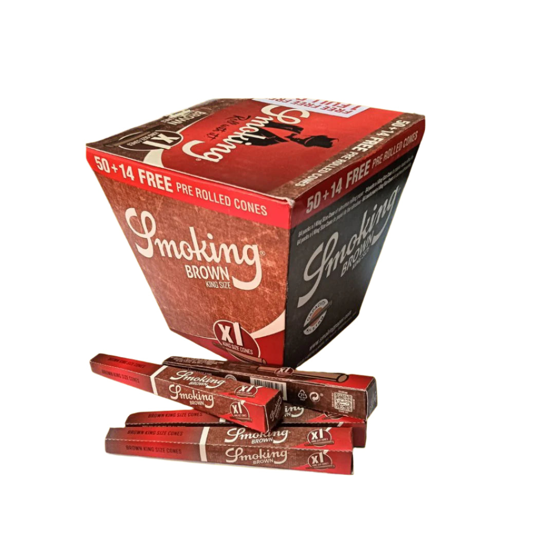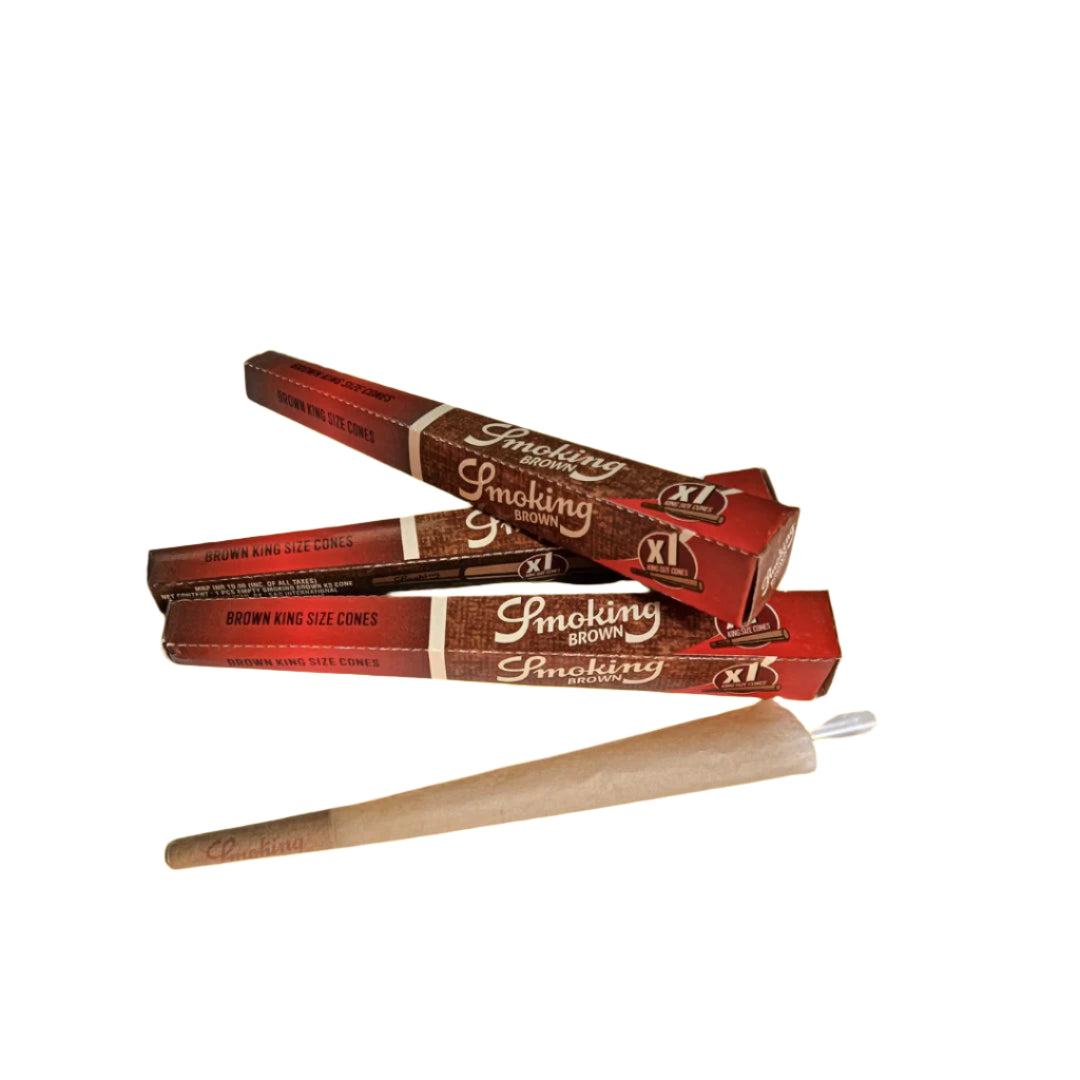 Elevate your smoking experience with Smoking Brown Pre-Rolled Cones - King Size. Made from unbleached, all-natural paper, these cones offer an eco-friendly, smooth burn without any additives. The pre-rolled design ensures quick and convenient use, while the king-size format allows for a fuller flavor. A premium, sustainable choice for those who value purity and simplicity.